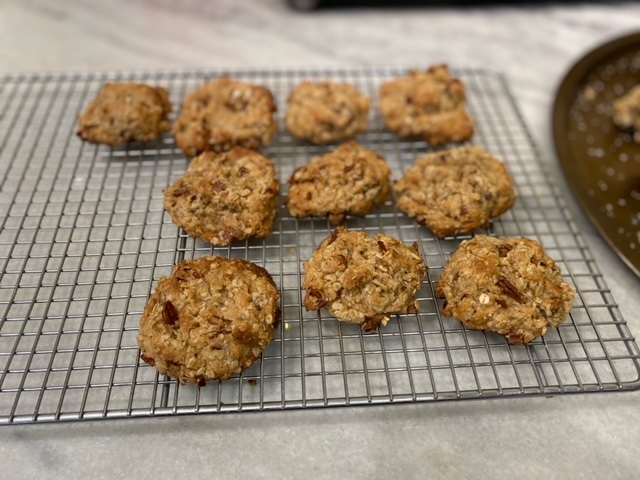 Drop by rounded spoonfuls onto an ungreased cookie sheet 2 inches apart and sprinkle the cookies with a light dusting of kosher salt. Bake in a 375 degree oven for 10-12 minutes until edges are golden and remove warm cookies to a cooling rack.